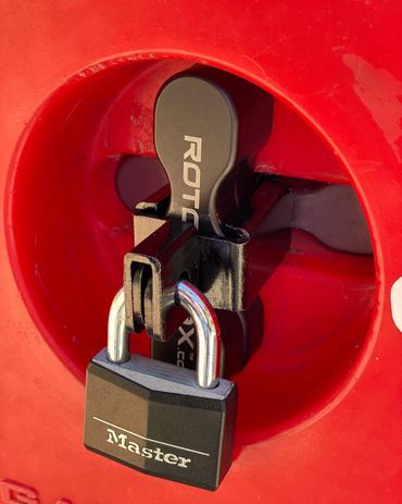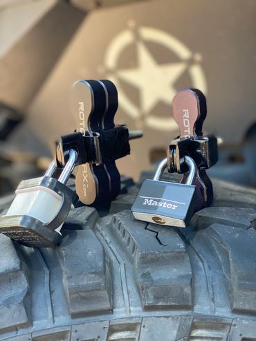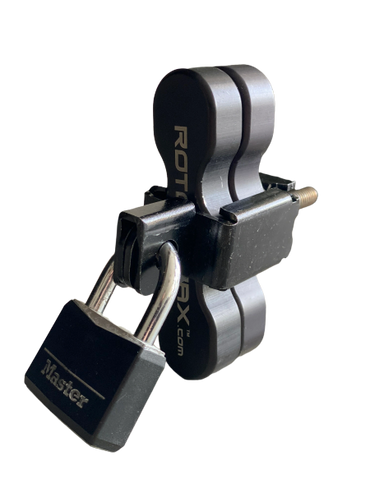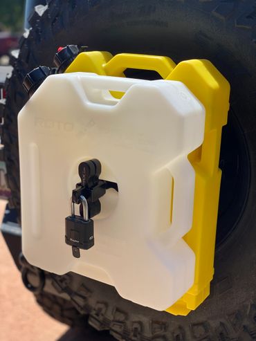 The Gorilla Clamp is a 3 piece lockable clamp system that wraps around the Rotopax handle and uses your own lock for securing your Rotopax tanks.